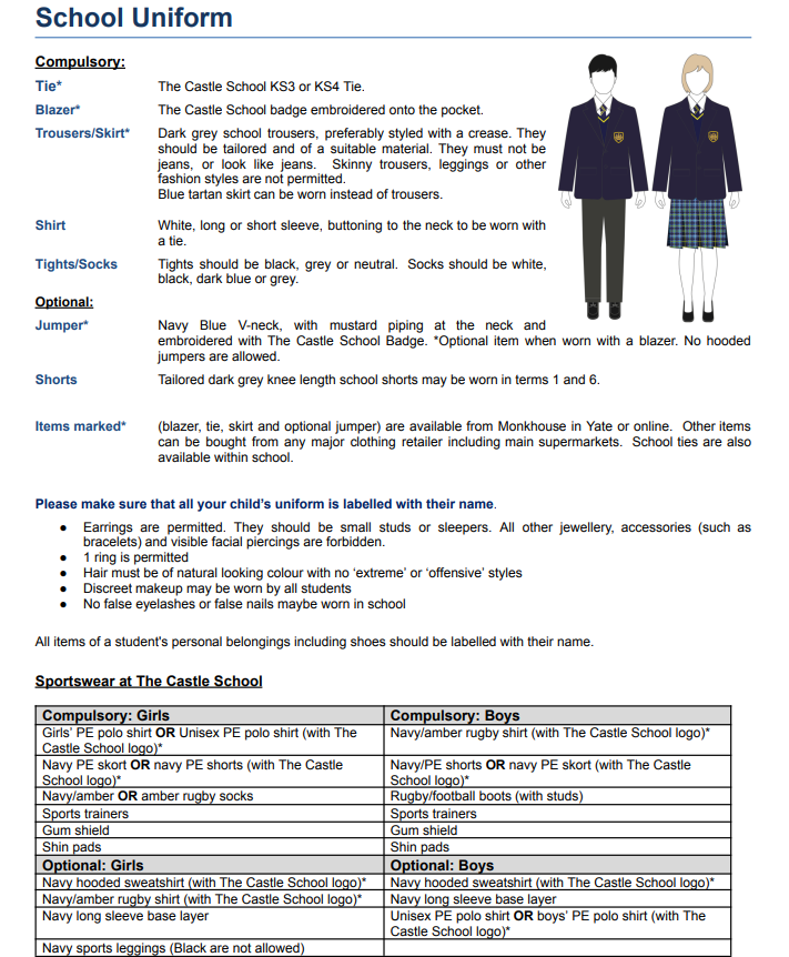 The Castle School Uniform can be purchased from Monkhouse Uniform or Linela.